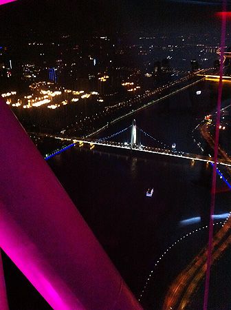 Vom 108. Stock der Blick auf den Pearl River. Die Auffahrt im Glasaufzug kostet 150 CNY (~19 EUR)! Für chinesische Verhältnisse ganz schön Krass...scheiss Touristen. ;)
