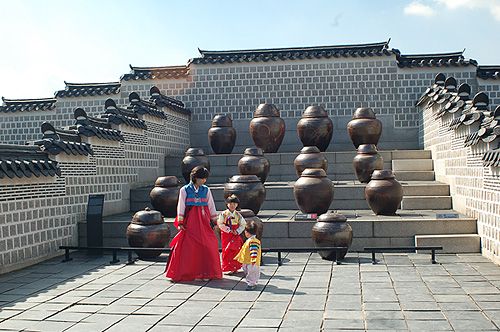 | Traditionell gekleidete Familie vor dem Vorratslager. Man kommt um Chuseok gratis rein, wenn man traditionelle Kleidung trägt. ^^ |