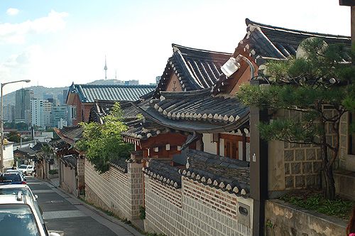 Anschliessend ging es noch zum Bukchon Hanok Village, im Prinzip auch 'ein Dorf' mit traditionellen koreanischen Häusern, nur viel cooler als das andere in dem ich war, weil hier wirklich noch Leute drin wohnen. Ist also ein ganz reguläres Wohngebiet, nur mit alten Häusern. Super, super schön. Und wie es der Zufall (*hust*) so will, steht auch mein absolutes Traumhaus dort. Ich habe es vor ein paar Jahren im Fernsehen gesehen und seitdem hat es mich nicht mehr losgelassen....also musste ich jetzt mal vorbei gehen und Verhandlungen mit dem Besitzer führen. ;)