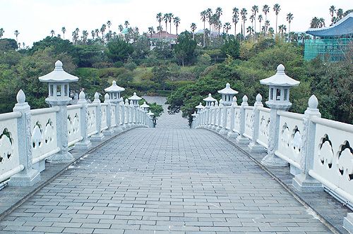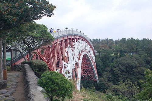 | Seonimgyo Brücke. Über dem Cheonjeyeon Wasserfall. Das weiße sind 7 Nymphen aus einer koreanischen Legende. |