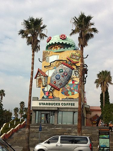 Heute bin ich dann zum Jungmun Tourist Resort gefahren, weil da ganz viele tolle Sehenswürdigkeiten vereint sein sollten, aber ich habe zuerst mal nur Hotels (die ganzen teuren wie Lotte, Hyatt, Shilla und so sind da) und Museen (Teddybär Museum, Schokoladenmuseum, Sound Island Museum, irgendein Kuriositäten Museum) gefunden. Dann hab ich mich aus Frust für ein paar Stunden in den Starbucks gesetzt und einen Haufen Postkarten geschrieben. Hier ist es genauso schwer Postkarten zu finden, wie in Seoul oder Guangzhou. Hätte ich nicht gedacht, ehrlich gesagt.