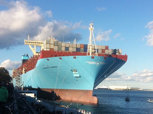 Majestic Maersk, the world's biggest container ship (18.000 containers), returned home from